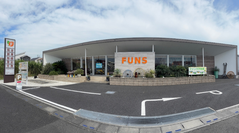 オレンジ色の「FUNS」ロゴが映えるモダンな外観。